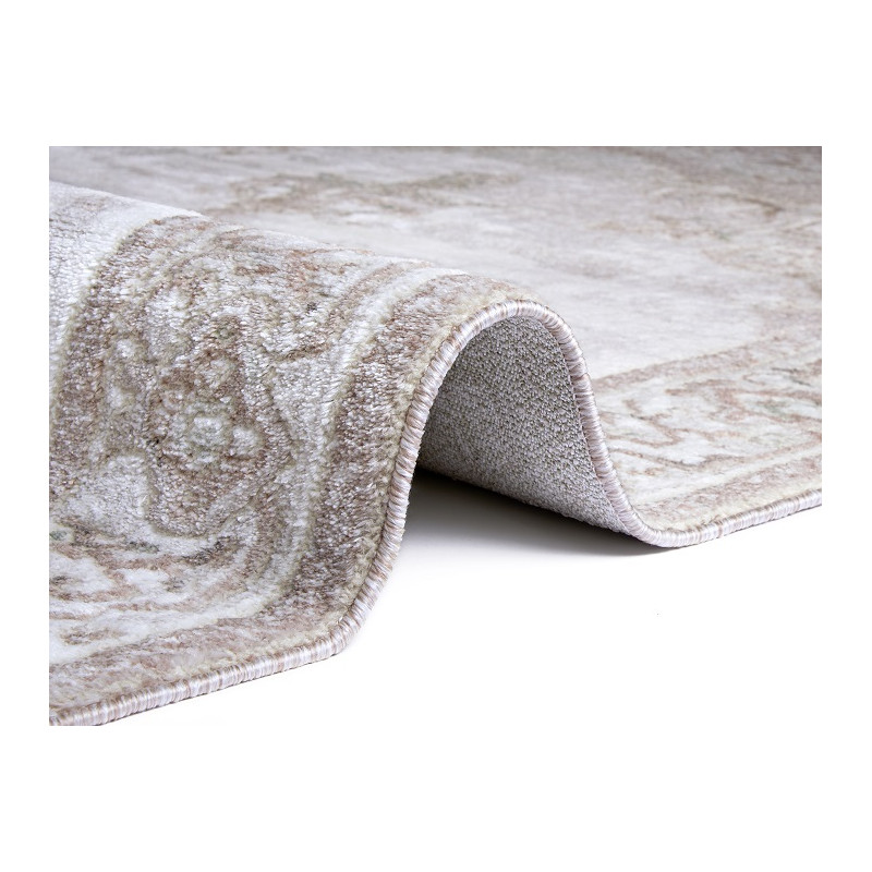 Tento koberec je obšitý po celém obvodu, a proto se může pyšnit několika praktickými vlastnostmi. V první řadě lemování zabraňuje třepení okrajů, což prodlužuje životnost tohoto kousku, zvyšuje bezpečnost a usnadňuje jeho údržbu. Zadruhé, díky obšití koberec vypadá dokončeně a upraveně. Hrany jsou čisté a dobře definované, a to mu dodává profesionální vzhled. V neposlední řadě koberec lépe přilne k povrchu, což přispívá k jeho stabilitě a zvyšuje komfort při chůzi.